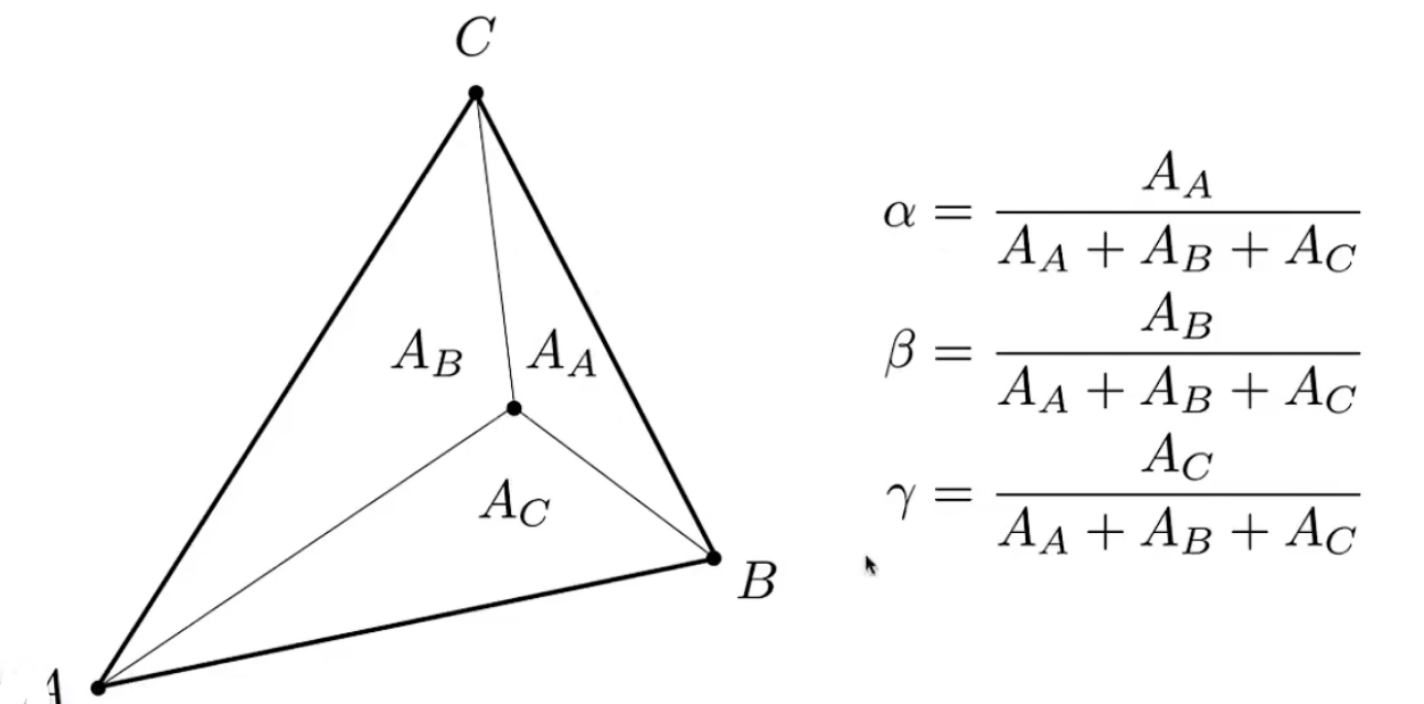 +也可以使用各面积除以总面积算出$\alpha , \beta , \gamma$