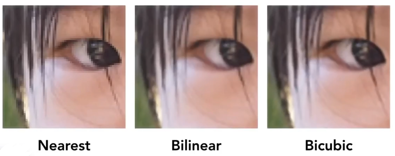 +- 解决方法3:**Bicubic**,双三次插值,取周围临近的**十六个像素点**进行插值运算