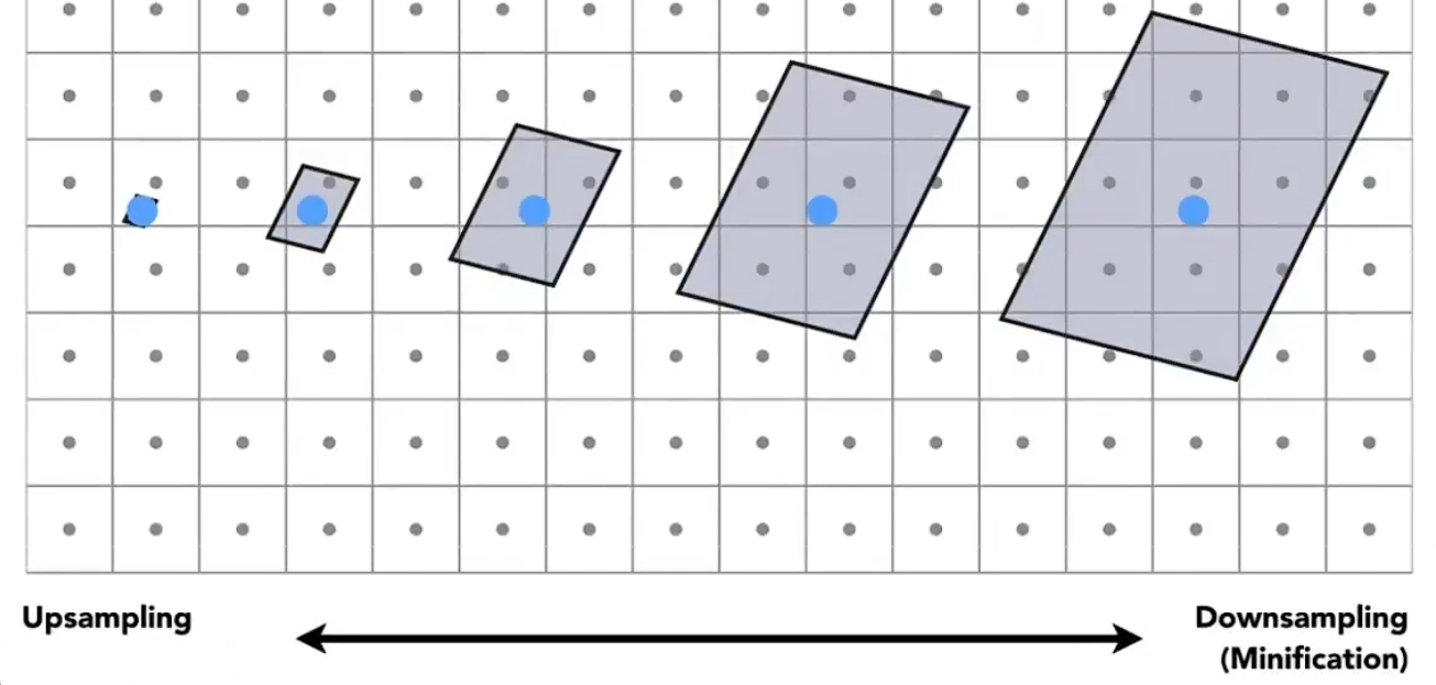 +因为分辨率太小,导致一个像素格代表了太多纹理中颜色变换,也就是说当像素点覆盖的纹理区域大的的时候,不能仅仅使用像素中心进行采样
