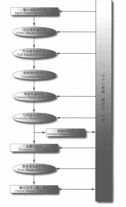 +输入装配器(`Input Assembler`, IA) 阶段会从现存中读取几何数据(顶点和索引, `Vertex And Index`),再将他们装配为几何图元(`geometric primitive`,如三角形和线条这种构成图形的基本元素)