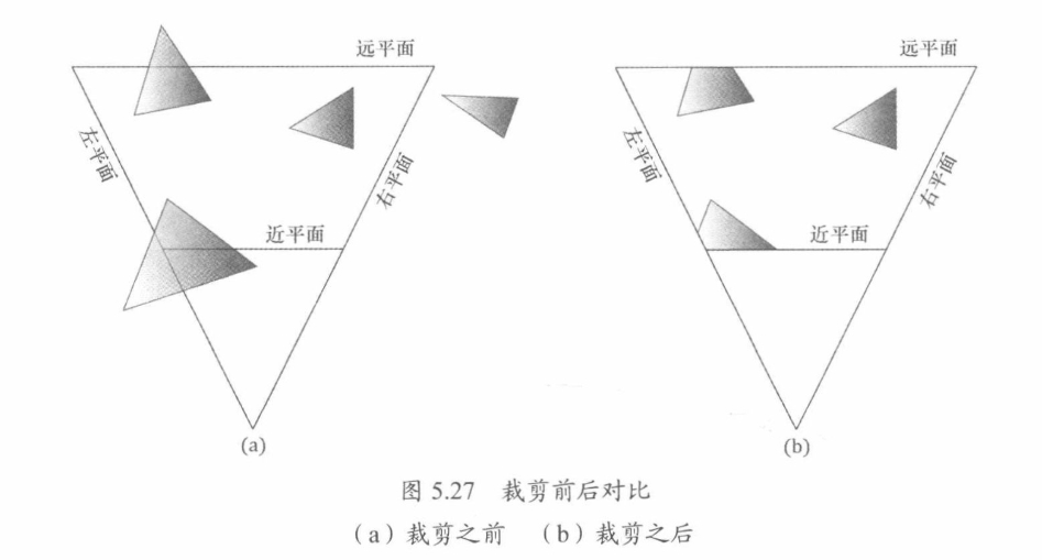 +位于视锥体之外的几何体需要被丢弃,而处于平截头体交界意外的几何部分也一定要接受被裁剪的操作。因此只有在平截头体之内的物体对象才能最终保留下来
