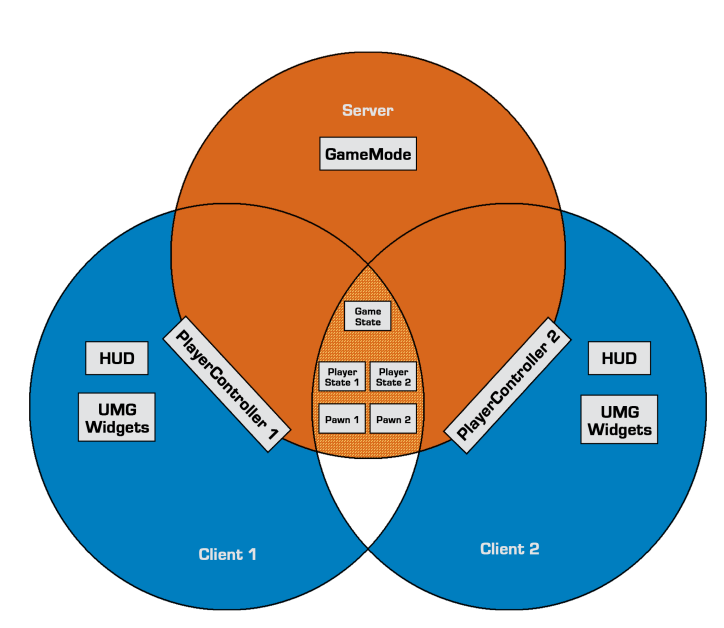+| Pawn | Pawn 和 Character 也存在于服务器和所有客户端上,可以复制变量和事件 |