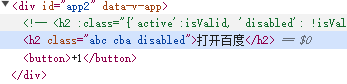 +        <h2 class="abc cba" :class="{'active':isValid, 'disabled': !isValid}">{{ message }}</h2>