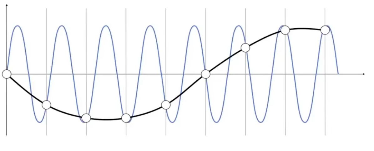 +通过上图我们可以发现,当采样的频率跟不上曲线变换的频率的时候,就无法还原出原始信号