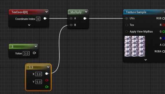 +由于 `UTiling`、`VTiling`` 等都是节点内部属性,无法通过直接设值暴露给材质实例