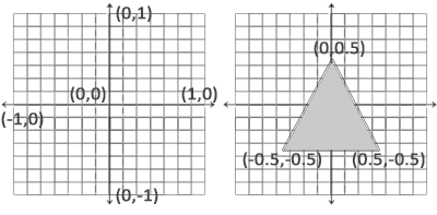 +标准化设备坐标是一个x、y和z值在-1.0到1.0的一小段空间。任何落在范围外的坐标都会被丢弃/裁剪,不会显示在你的屏幕上