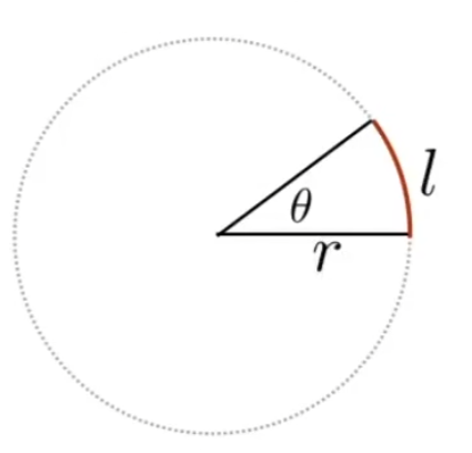 +在二维平面上, $ \theta=\frac{l}{r} $
