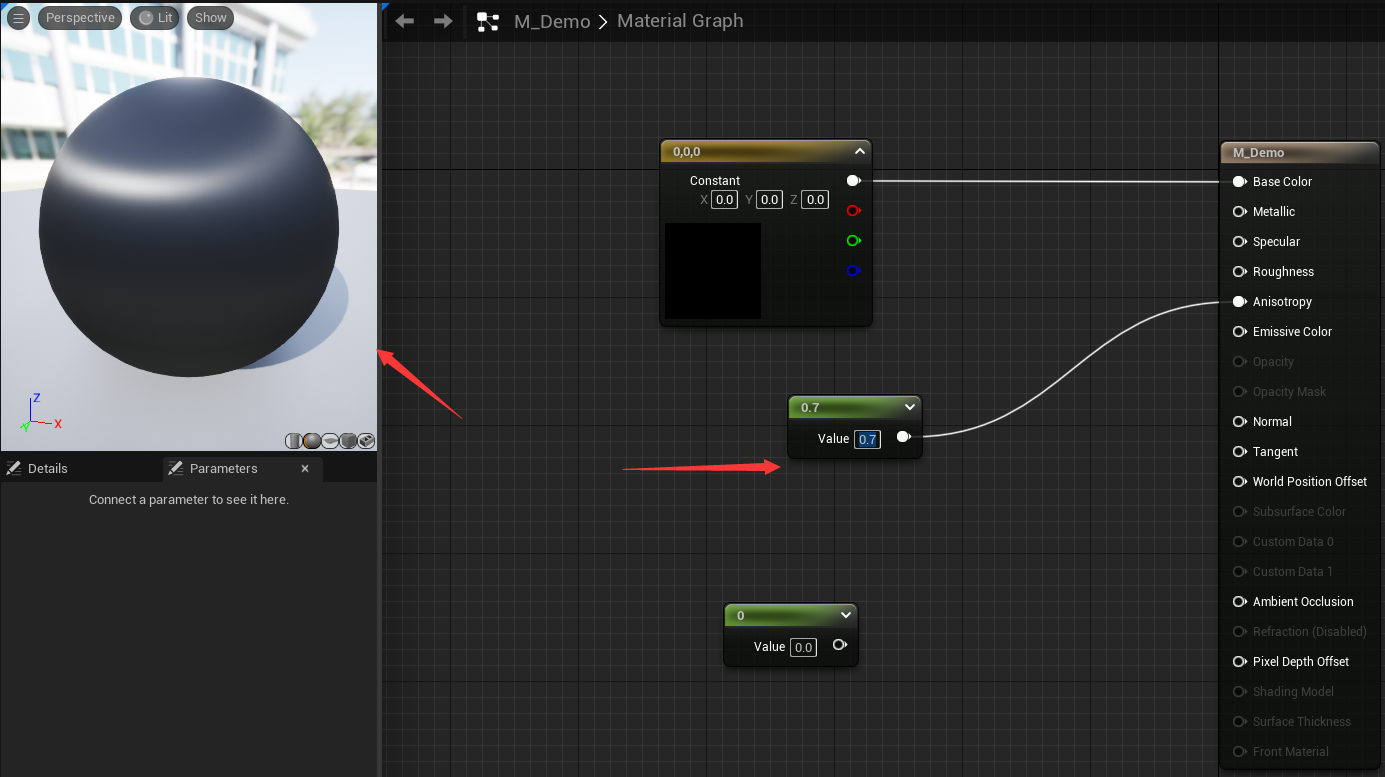 +| Anisotropy | 各向异性,参数 0~1,可以控制高光形状,默认高光是圆形的 |