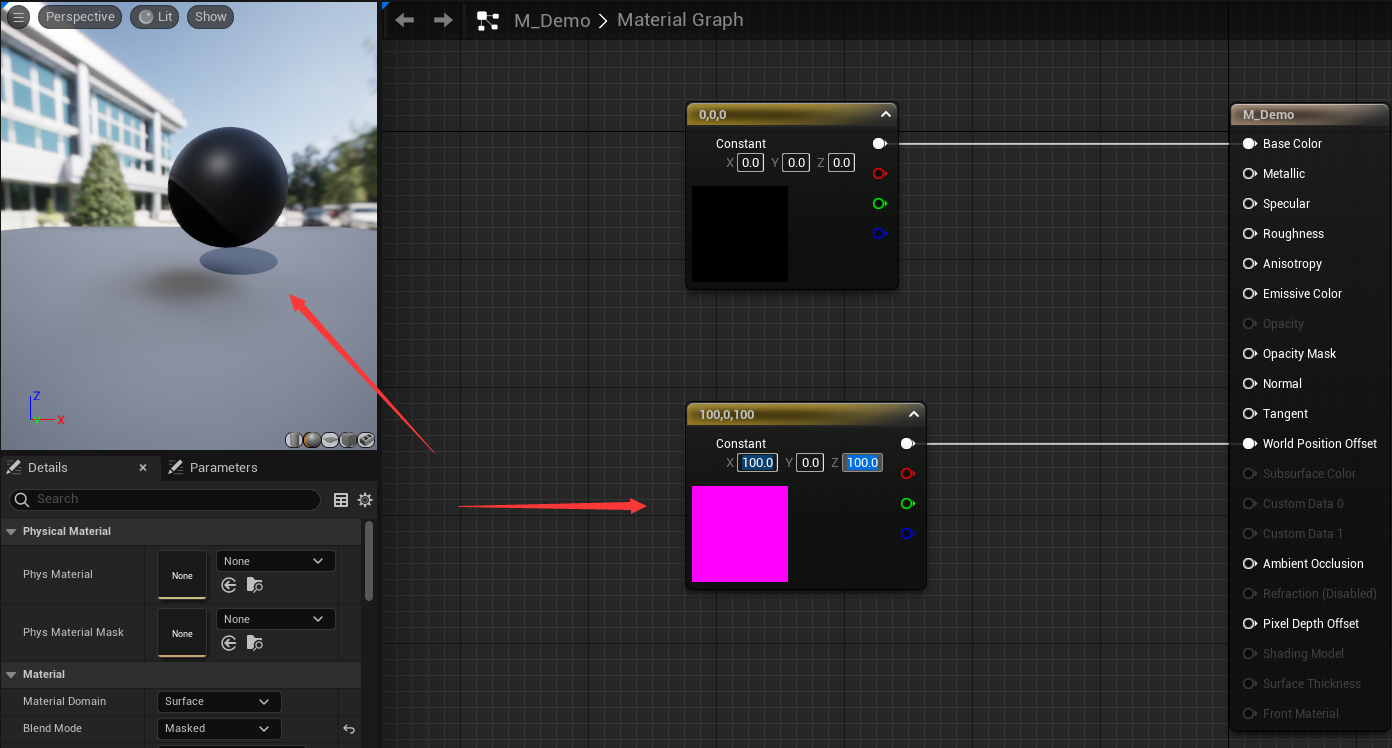 +| World Position Offset | 全局位置偏移,通过调节材质可以修改被赋予材质的模型在空间中的位置 |