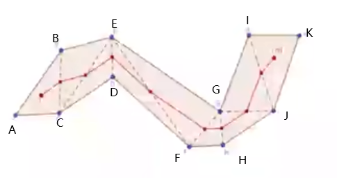 很明显上面的路径并不是真实意义上的最短路径,以 DE 线段上的路径点为例,如果路径点在D上明显可以缩短路径
