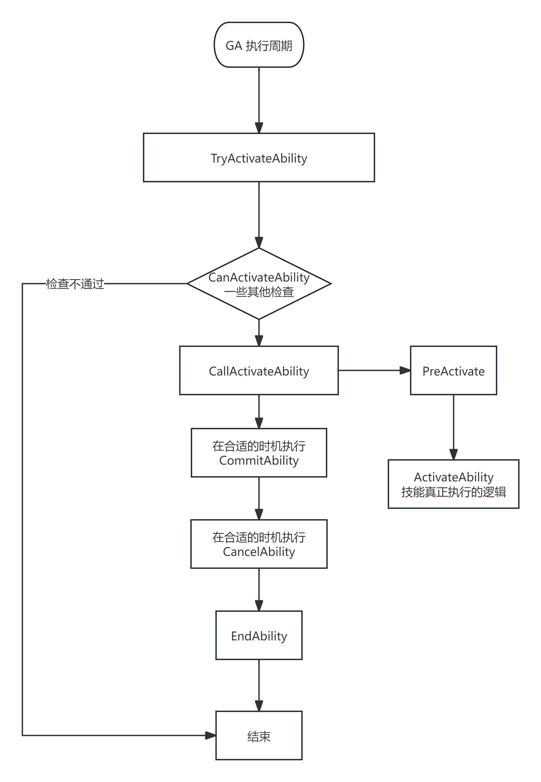 会依次进行 CanActivateAbility 检查、处理 GA 的实例化、网络预测