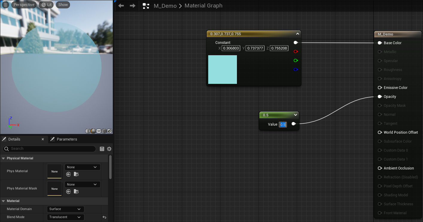 | Opacity | 不透明度,参数 0~1,默认不开启,需要设置混合模式(Blend Mode) 为半透明(Translucent)可开启 |