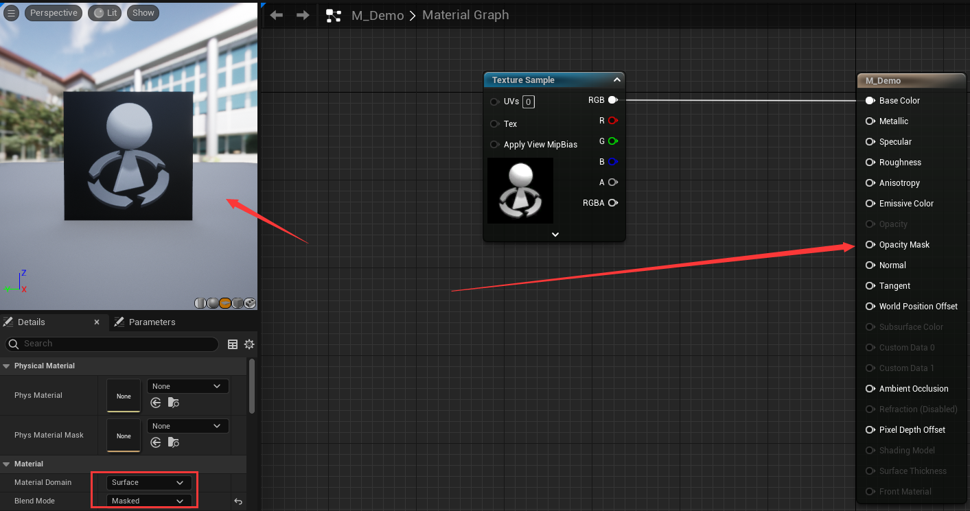 | Opacity Mask | 不透明遮罩,一般用于带透明通道的贴图,默认不开启,需要设置混合模式(Blend Mode) 为已遮罩(Masked) |