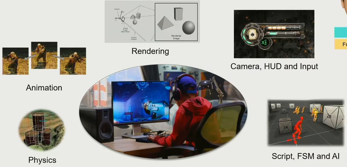 动画、相机、渲染、物理、脚本、UI等