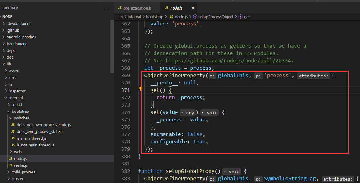 参考 node 的源码,就是直接将 process 设置为 global 的属性