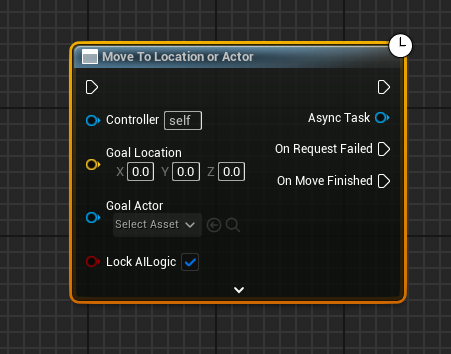 UFUNCTION(BlueprintCallable, Category = "AI|Tasks", meta = (AdvancedDisplay = "AcceptanceRadius,StopOnOverlap,AcceptPartialPath,bUsePathfinding,bUseContinuousGoalTracking,ProjectGoalOnNavigation", DefaultToSelf = "Controller", BlueprintInternalUseOnly = "TRUE", DisplayName = "Move To Location or Actor"))