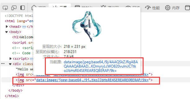 miku.jpg 只有 7kb,会直接生成 base64 码miku2.jpg 有 180kb,会通过 http 请求图片进行下载显示使用