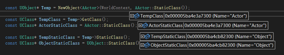| inline static UClass* StaticClass() | 定义 StaticClass 获取静态数据信息 |