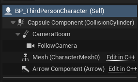 ArrowComponent 和 Mesh 的层级与 CapsuleComponent 不同,这是因为通过 SetupAttachment 设置到 CapsuleComponent 中