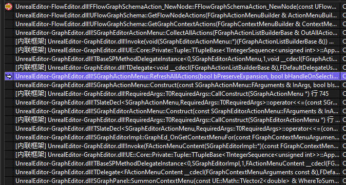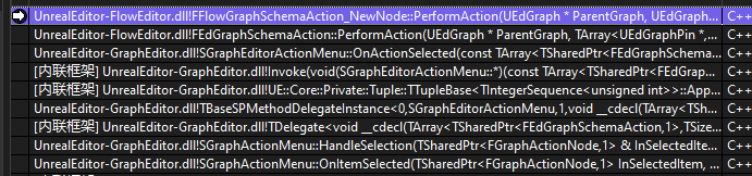 比如,在蓝图中,左键选中节点。正如前面所说,右键显示的列表,每个列表都是一个 FEdGraphSchemaAction,当你选中列表中一个 项 的时候,就会触发 PerformAction