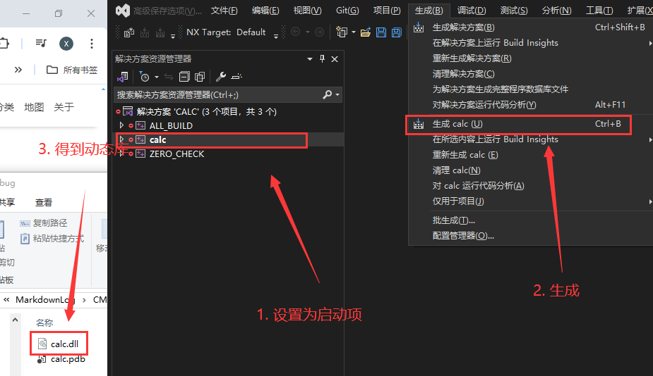 这个 visual studio 项目的名称就是 project 中设置的 CALC