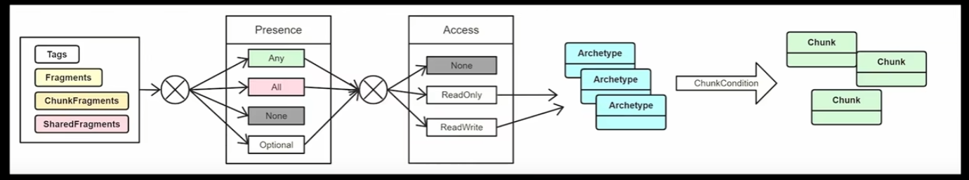 FMassChunkFragmentBitSet ChunkFragments;    // Chunk 数据