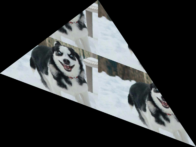 对于贴图来说,我们会发现如果三角形过大,出现与图片放大时使用最近邻插值算法一样的锯齿情况,这是因为我们在通过 UV 坐标计算像素颜色时的方式与图片放大最近邻算法相似,同理我们可以在这里使用双线性插值的算法优化贴图计算