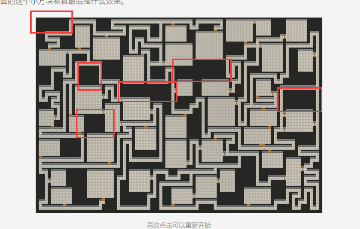坍塌的代码很简单,就是将找到的熵值最低的方块,随机一种其可能的瓦片类型,将对应方块的其他可能设置为false,并且将熵设置为1
