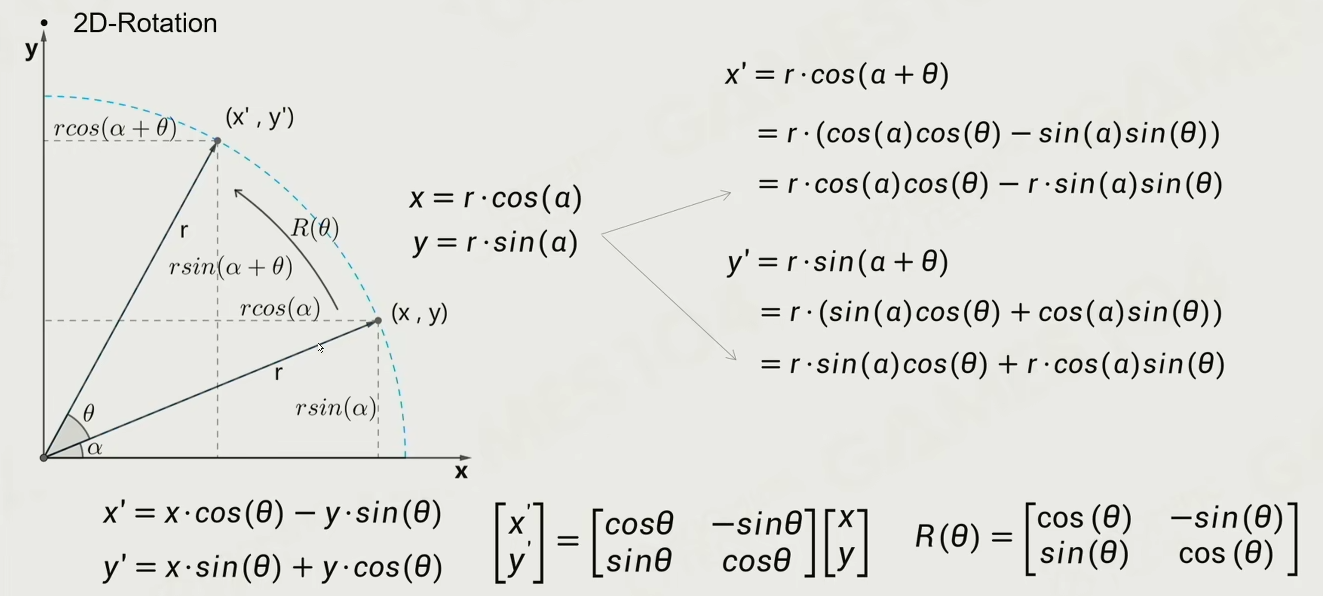 而 $\begin{bmatrix} \cos\theta & -\sin\theta \ \sin\theta & \cos\theta \end{bmatrix}$ 又是经典的 2D 旋转矩阵