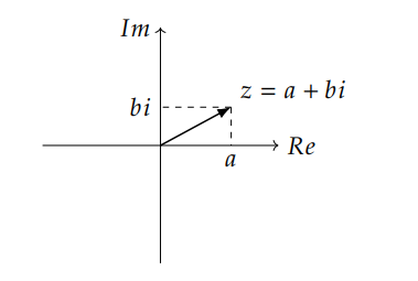 因为这个向量有两个元素,我们可以使用复平面上的一个点来表示一个复数, 复平面的横坐标 𝑅𝑒 代表它的实部,纵坐标 𝐼𝑚 代表它的虚部: