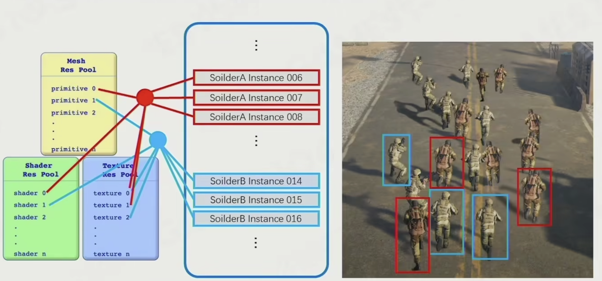 一般游戏引擎都有资源管理器,属于一个虚拟的文件系统,通过路径加载、卸载各种资源;同时还要通过hanle系统管理资源的生命周期和各种引用