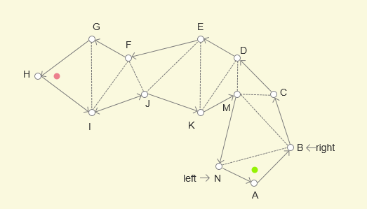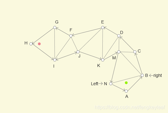 以 N 点为例,规定其为左边界顶点,那么沿着多边形的外边(实线边),所经过的顶点都是左边界顶点,不包括 H