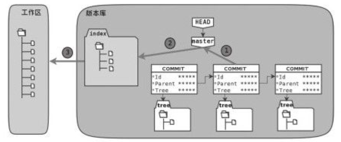 <commit>为可选项,可以使用引用或者提交ID,如果省略<commit>则相当于使用了HEAD的指向作为提交ID