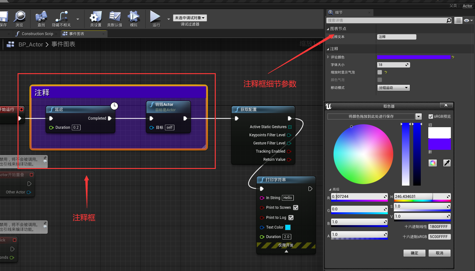 这里的TEXT是虚幻中用来构建非对象型字符串的关键宏,构建结果是与平台无关的宽字符串,借助对象FString带参构造函数TCHAR类型指针来构建FString对象字符串