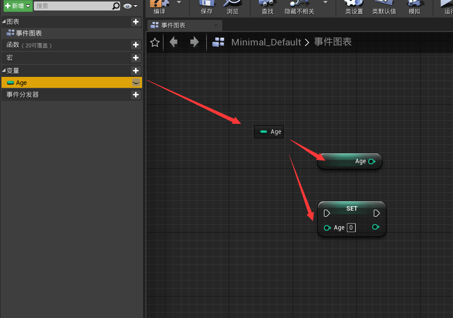 选中目标变量,将其拖入到蓝图的视口中,可以选择使用get/set方法