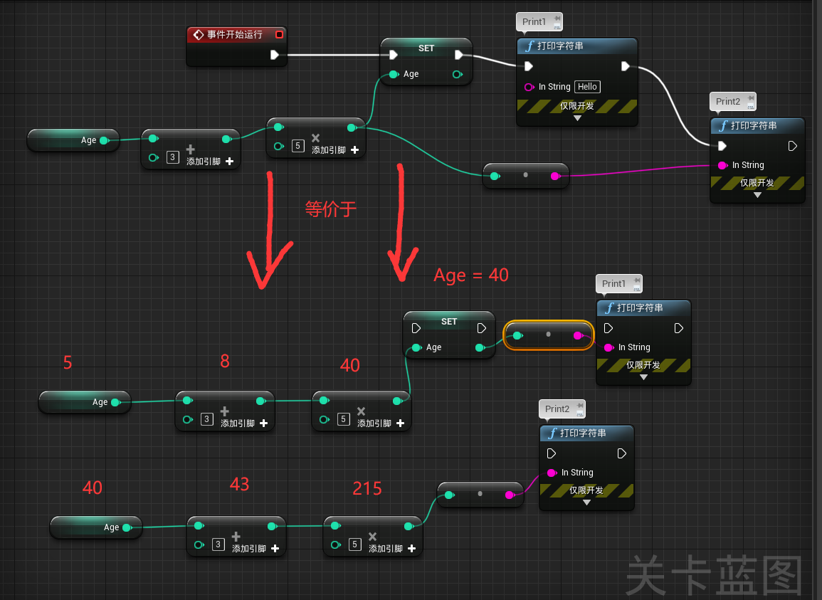 当执行到*设置Age的值*时,根据针脚指针往回推导,开始计算,最后设置Age的值为40