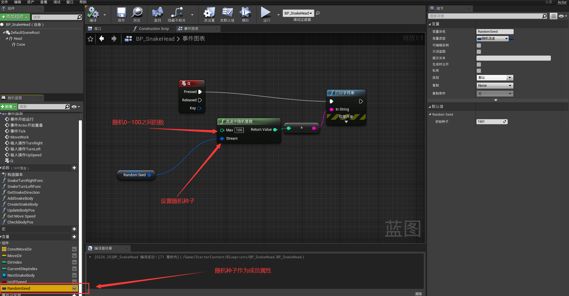 借助全局变量GEngine子还真调用函数AddOnScreenDebugMessage即可完成输出