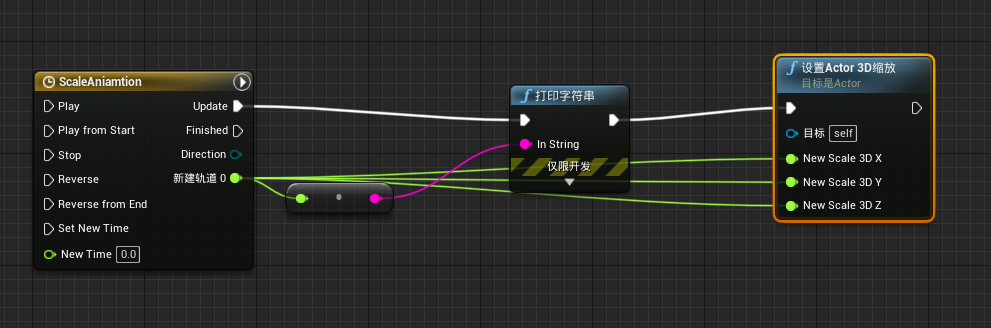AddActorWorldOffest节点,设置参数日志可以提供运行时态的程序信息,并进行输出 通过查看日志来查看对象状态,以反馈数据内容