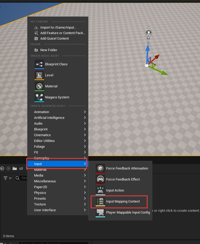 创建 Input Mapping Context 命名为 IMC_Move 和 Input Action 命名为 IA_MoveForward