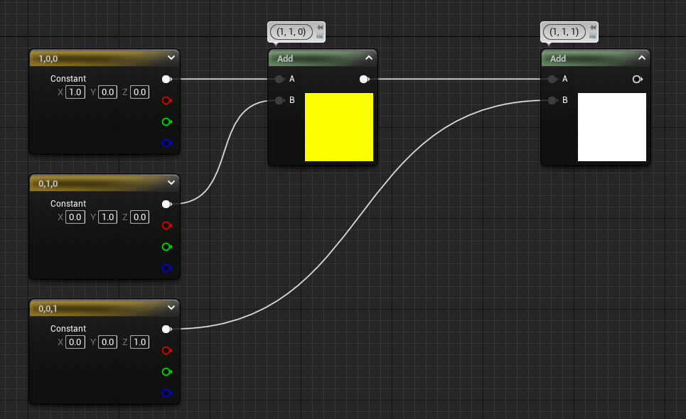 如上图所示,通过 MakeFloat2、MakeFloat3 和 MakeFloat4 直接创建对应维度的节点可以实现对应功能
