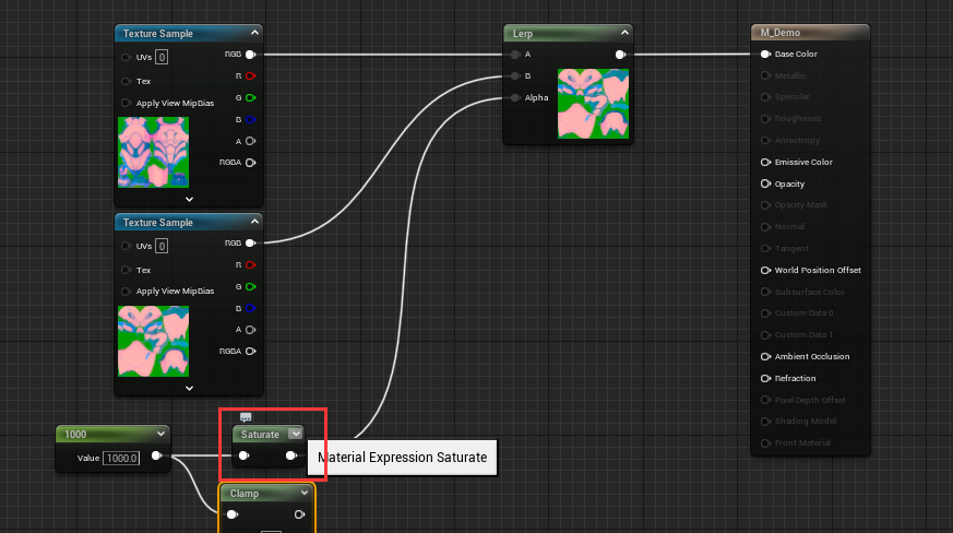除了 Clamp 节点之外,还可以使用 Saturate 节点,该节点会直接帮你将值设置到 0~1 的区间内