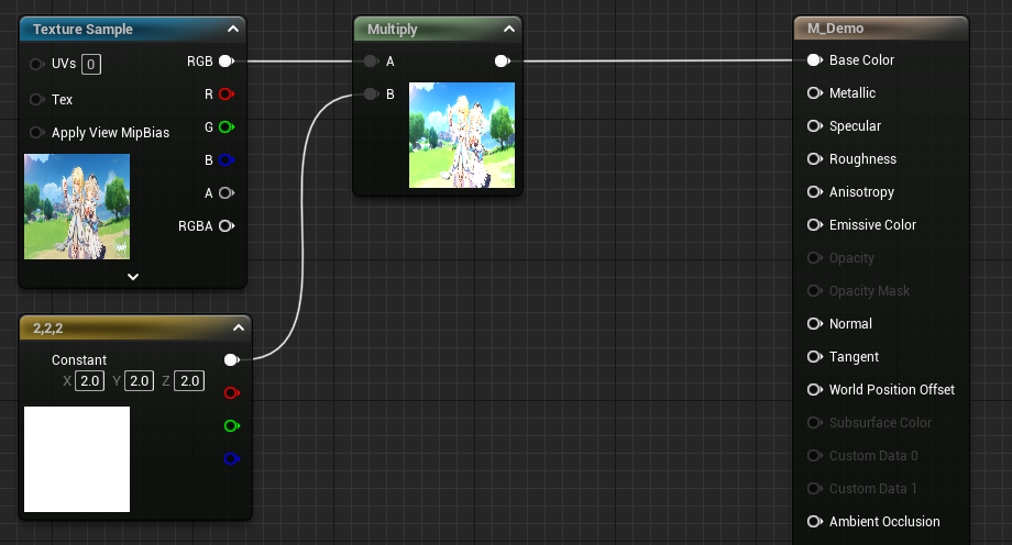 在材质中一维数据可以和其他多维数据进行加减乘除操作,但是二维数据无法与三位数据进行加减乘除