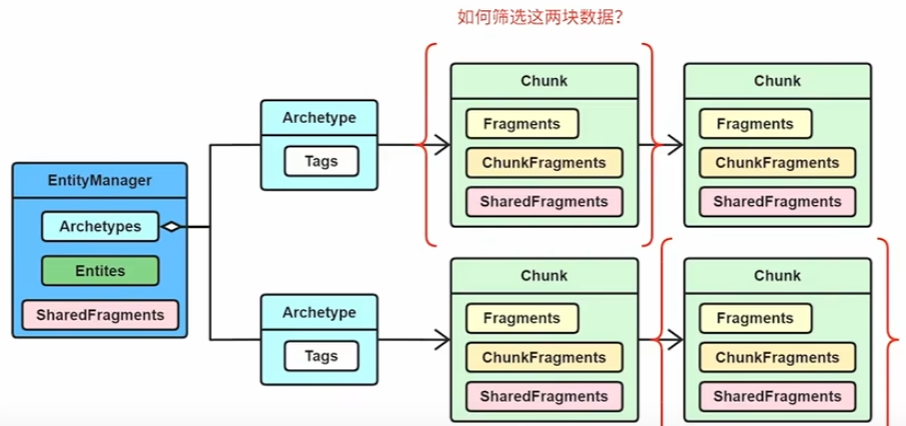 ChunkFragmentData 就是独属于这块 Chunk 的附加数据,比如 第1个Chunk 的 Entity 离玩家比较远,需要 1s 一次进行计算;第2个 Chunk 的 Entity 离玩家比较近,需要 0.1s 一次进行计算